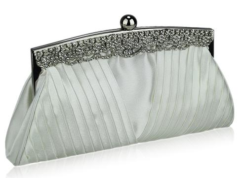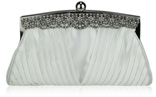 Beautiful Ivory Ruched Satin Clutch with Crystal Decoration