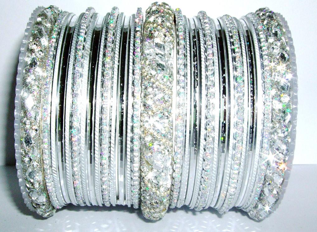 Beautiful Silver indian fashion bangles incorporating the finest Clear stonework