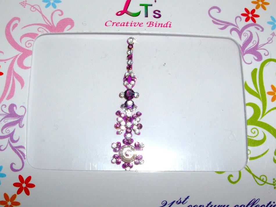 Co-ordinate your outfit with this beautiful long purple indian fashion bindi featuring glistening clear stones/crystals