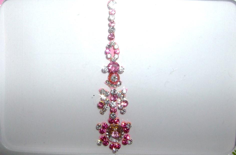 Co-ordinate your outfit with this beautiful baby pink indian fashion bindi featuring glistening stones/crystals